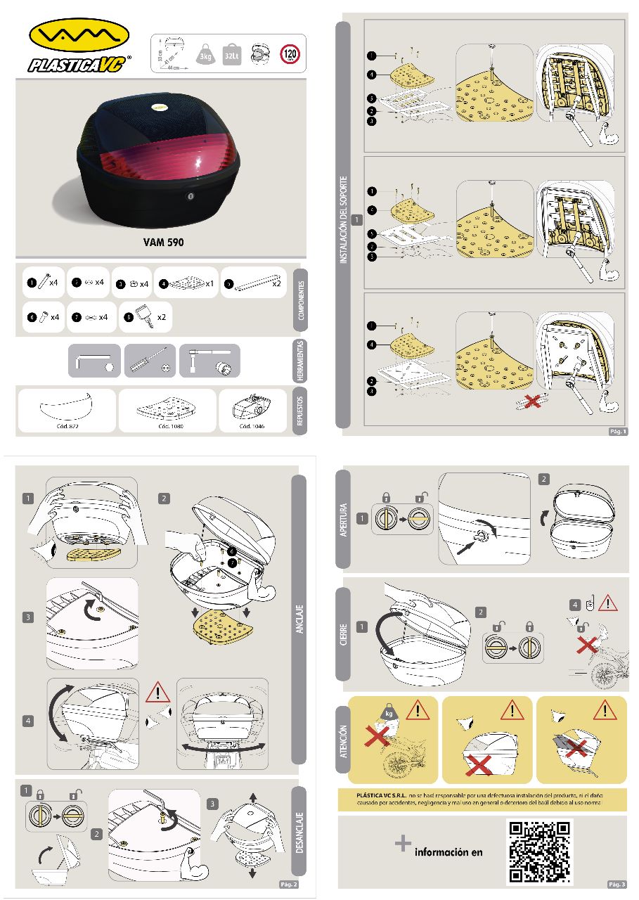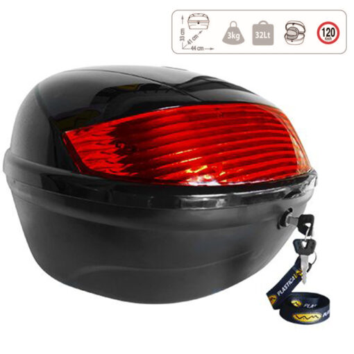 BAUL porta objetos 33x44x41 para 1 casco, con tope de apertura, base desmontable, respaldar, reflectivo trasero y 2 llaves. ( incluye llave allen).