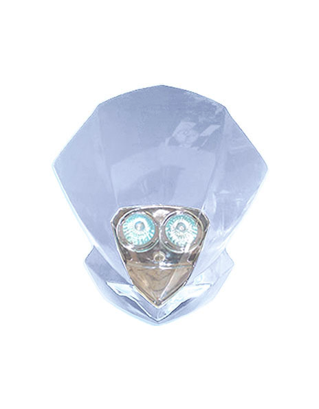 CUPULINA DELANTERA MOD. SHARK UNIVERSAL COMPLETA con 2 lamparas Dicroica 12V/20W y 1 regl.12V/5W Colores NEGRA INCLUYE 4 CORREAS DE MONTAJE en caja exhibitoria