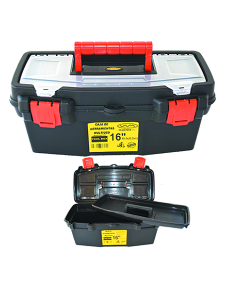 Caja de Herramientas / Multiuso 16" 40,5x23,5x18 color negro c/bandeja divisora y Tapa Organizadora Con Cerradura Plastica REFORZADA