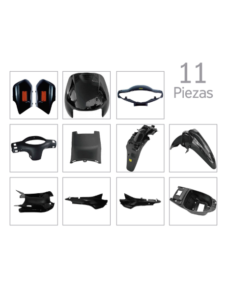KIT carenado SMASH / BIZ /Brava Nevada 110 /OTRAS 110cc 11 Piezas color Negro